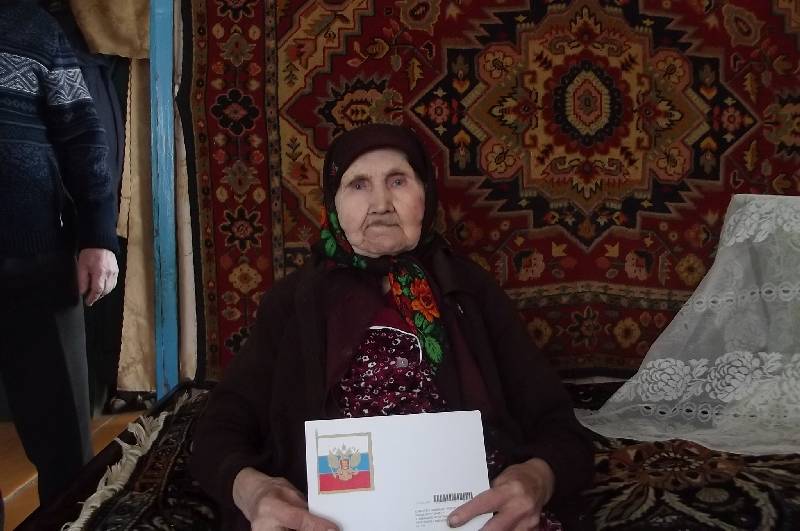Глава поселения Рабина Антонина Риммовна вручила юбилярше письмо В.В.Путина с пожеланиями. Антонина Риммовна от себя лично пожелала Евдокии Фёдоровне крепкого здоровья, спокойствия и благополучия.