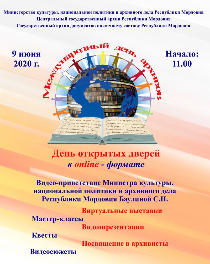 9 июня 2020 года архивисты Республики Мордовия приглашают принять участие в Дне открытых дверей в online-формате, посвященном Международному дню архивов