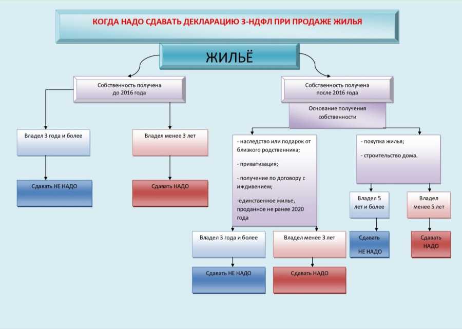 Сейчас такой срок действует в следующих случаях: - при наследовании или по договору дарения от члена семьи или близкого родственника; - в результате приватизации; - в результате передачи по договору пожизненного содержания с иждивением. Расширение перечня применения минимального трехлетнего срока владения с 2020 года касается не всех случаев. Например, если квартир две и они куплены в одно время в 2016 году и позже, то при продаже одной из них в 2020 году налогоплательщик все равно должен подать декларацию и заплатить НДФЛ. Если же одна из квартир куплена в течение 90 дней до продажи второй, то минимальный срок владения составит 3 года. Например, в декабре 2016 года куплена первая квартира, а в начале января 2020 года – вторая. В таком случае до начала апреля 2020 года первую квартиру можно продать без подачи декларации и уплаты НДФЛ. Нововведения касаются не только квартир, но и земельных участков с жилыми домами и хозяйственными постройками. Условия освобождения от уплаты НДФЛ те же. Предлагаем вашему вниманию таблицу, чтобы легче было понять, стоит ли обращаться в налоговую после продажи имущества или нет. Сдать декларацию по продаже 2019 года, необходимо до 30.07.2020г.