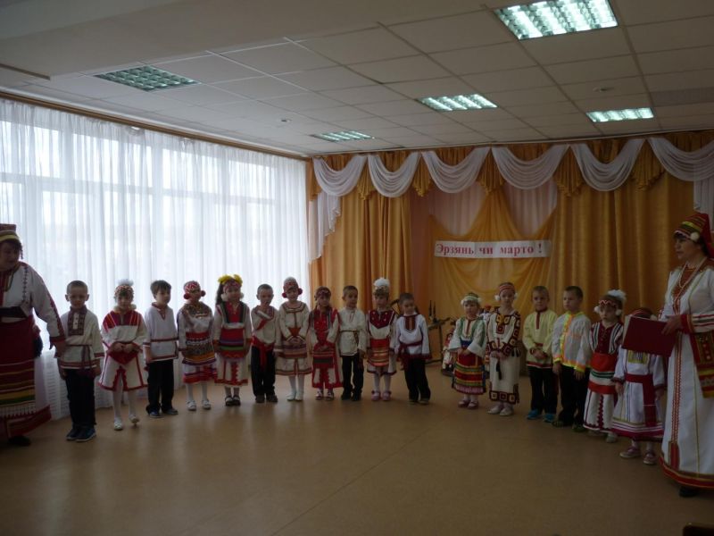 И с самого раннего возраста воспитатели стараются привнести в жизнь дошкольников самое главное – истоки и корни эрзянского народа. Сегодня на празднике слышны были песни, шутки, игры. Воспитатели исполнили авторскую песню Жегалиной Р. Д. «Эряк, чачома велинем». Обязательный гимн эрзянского праздника в детском саду – «Эрзянь кель». Помощь в аккомпанементе оказал МБУК РДК и баянист Мамаев П. А. Педагог дополнительного образования МБУДО «Дом творчества» Семенова Л. В. провела интересные игры на эрзянском языке.